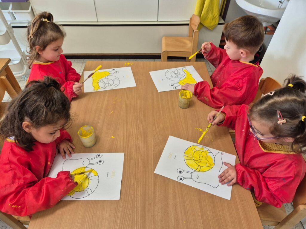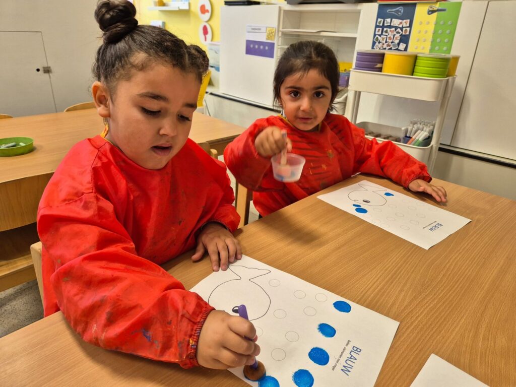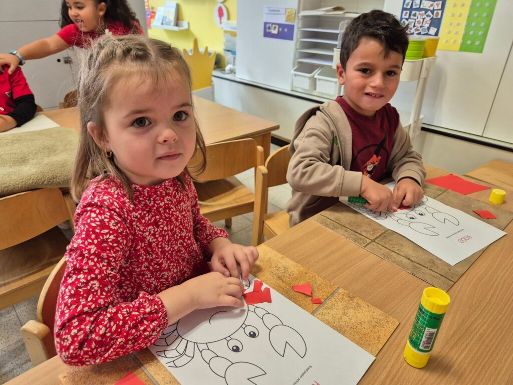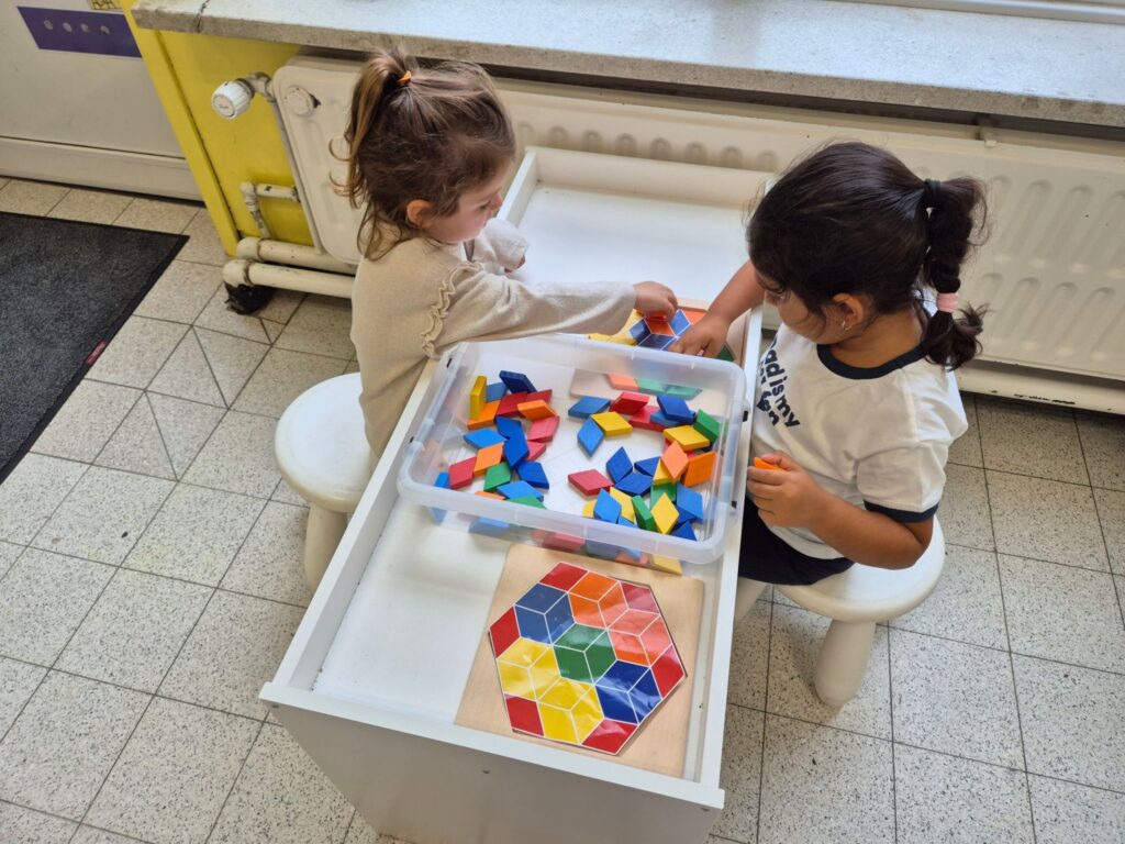 De afgelopen weken werkten we rond het thema “kleuren”. Samen gingen we op zoek naar kleuren in de klas en op de speelplaats. Elke dag kozen we één kleur en mochten de kinderen die kleur als kledij aandoen – dat zorgde voor veel enthousiasme!
